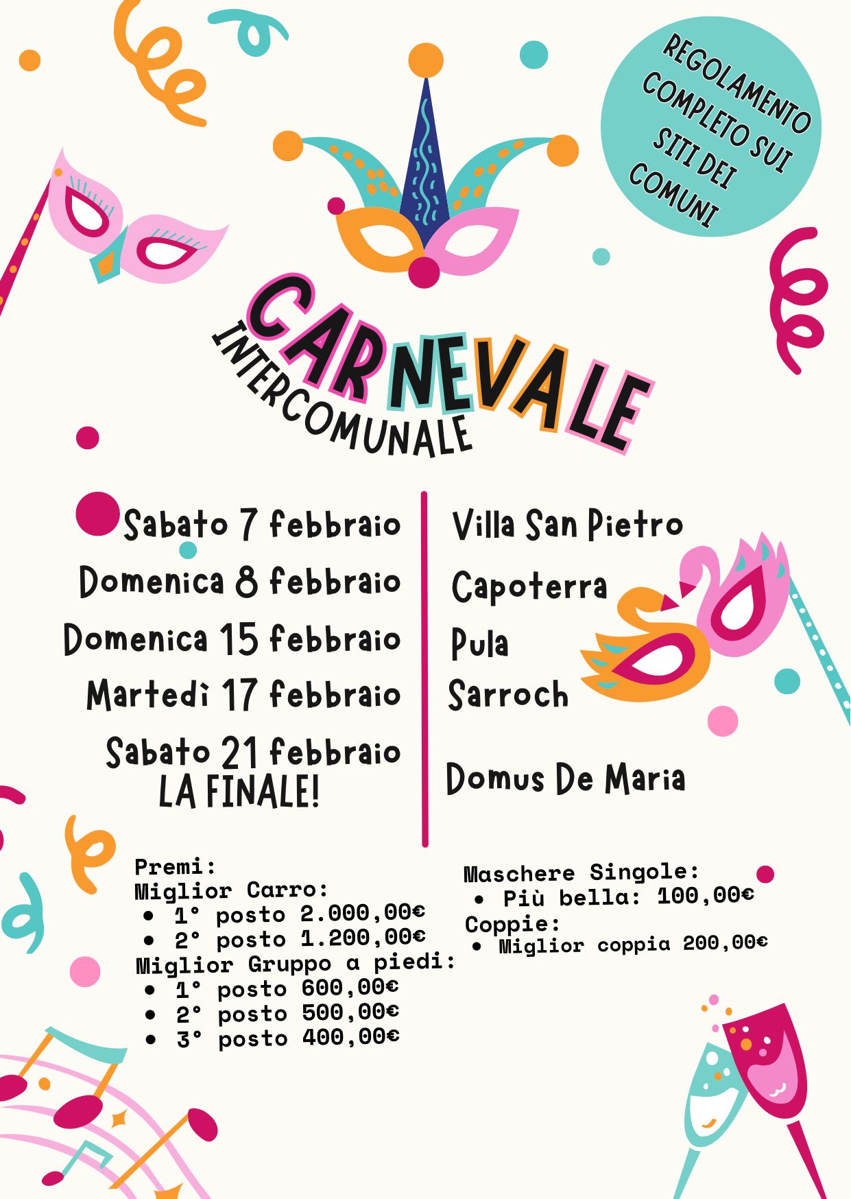 Per il quarto anno consecutivo il Comune di Domus de Maria organizza e partecipa alla festa del CARNEVALE INTERCOMUNALE 2026!